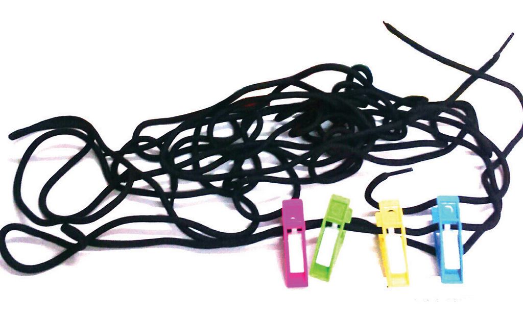 45 אטבים עם 3 שרוכים באורך 3 מ' במיכל.