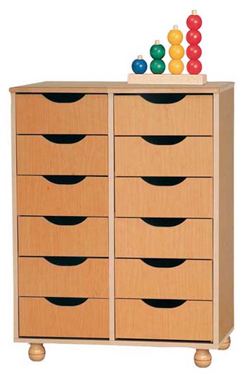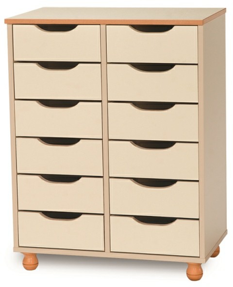 ארון 12 מגירות המתאים למעונות יום, גני ילדים וחטיבות צעירות.