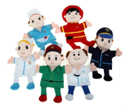 מכילה 6 כפפות תאטרון – רופא – אחות- כבאי- שף -בנאי -ושוטר בובות המחשה של בעלי מקצוע למשחק והזדהות עם הרופא או השוטר ,,,,,,,