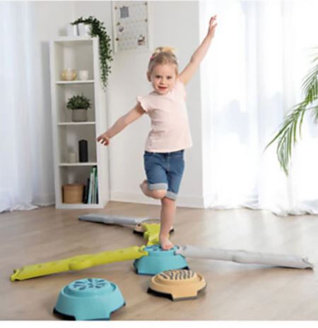מורכב מ-4 אבני מדרך, 4 קורות איזון ופוסטר אחד עם רעיונות בנייה. עשוי מפלסטיק יציב