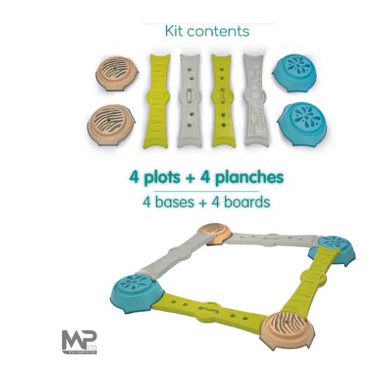לוחות הפלסטיק המעוצבים מבטיחים חוזק ובטיחות, לבסיסים יש משטח מונע החלקה, להליכה וקפיצה עליהם, בבטיחות מוחלטת