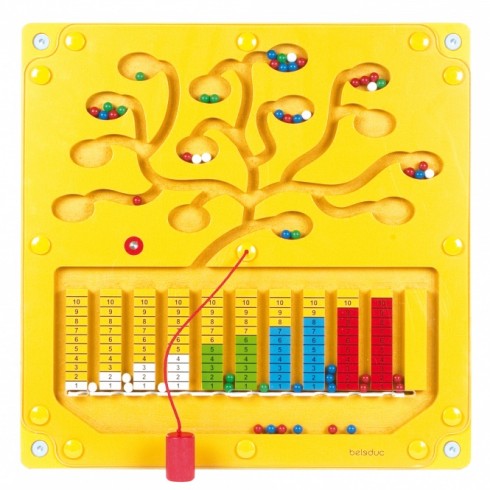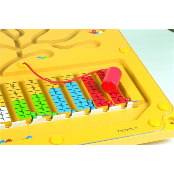 עם העט המגנטי ממינים את הכדורים לפי כמויות וצבעים.