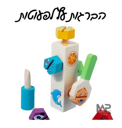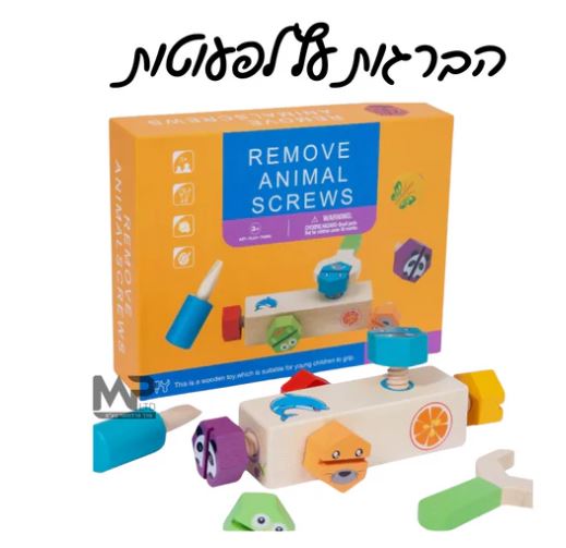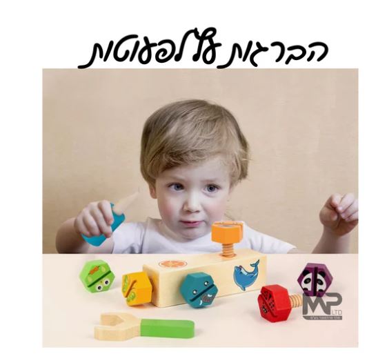 כולל בתוכו בסיס עבודה מעץ, 6 ברגים בצבעים שונים, 2 כלי עבודה להברגה וסיבוב