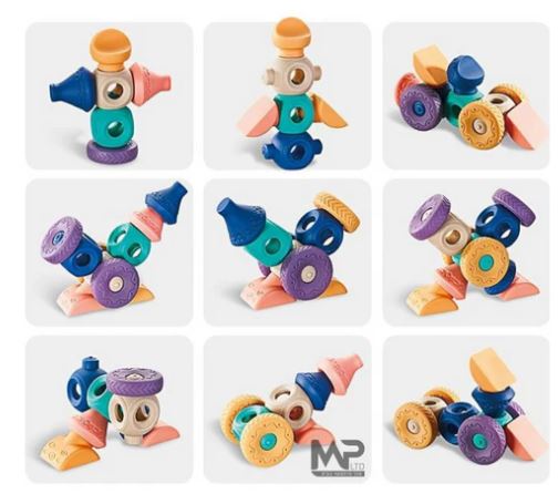 החלקים הגמישים והרכים בעלי צורות והצבעים המיוחדים יעניינו את הילדים ויפתחו את המוטוריקה, קוארדינציה חזותית-שמיעתית וחוש המישוש של הילדים