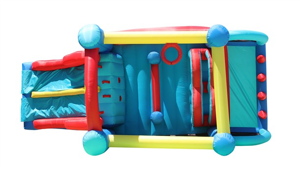 מתקן מתנפח עם מגוון מכשולים + 2 מגלשות צמודות.