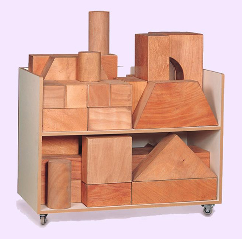 עגלה לקוביות עץ נבובות עשוי מסנדוויץ' בציפוי פורמייקה בצבע מייפל או שמפנייה.