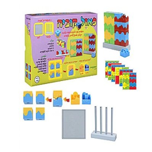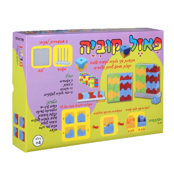 התאמת שני חלקים לקוביה שלמה וקבלת ארבע צורות בצדדיה ניתן לבנות את הדגם על הלוח או על המעמד גילאי 4+