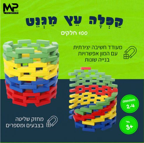 משחק בנייה המכיל כ-100 חלקים עשויים עץ ובעלי מגנטים בשני הצדדים