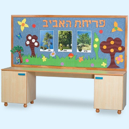 שולחן תוכן בשילוב ארוניות בצדדים. מומלץ להתקין את הלוח לבד על הקיר ואילו את השולחן להצמיד לקיר.